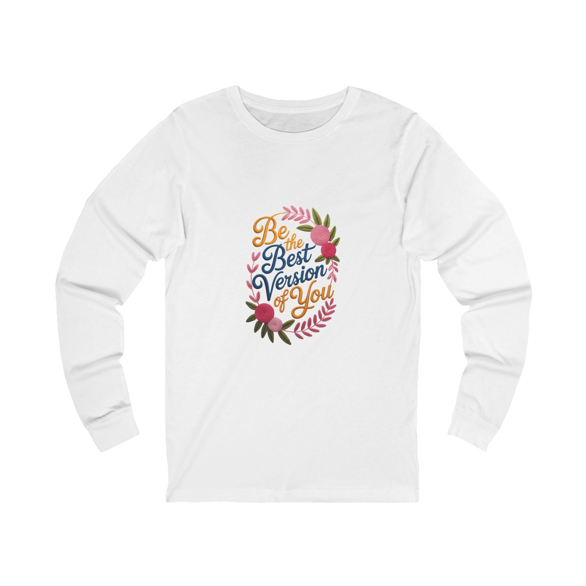 Light and soft, this long-sleeve tee carries a gentle, uplifting message framed by hand-drawn florals. The slim retail fit and breathable Airlume combed cotton feel like a second skin on cool mornings and layered evenings. Wear it as a quiet reminder during a coffee break, a stroll through town, or a casual meet-up with friends — the scripted lettering and warm palette blend into everyday life while keeping the vibe personal and hopeful.
